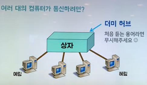> 이렇게 하나의 전선을 박스에 넣어 놓은 것을 더미 허브라고 한다.