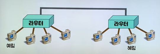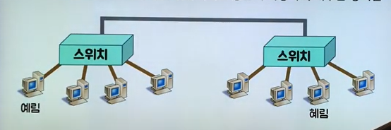 > 여러 컴퓨터를 연결하기 위해서는 전선을 연결한다.