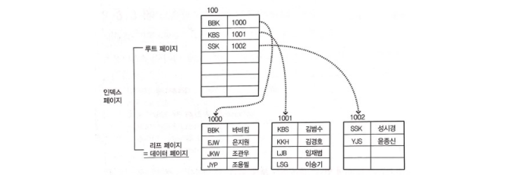- 클러스터형 인덱스는 리프 페이지가 곧 데이터이다. 따라서 인덱스 자체에 데이터가 포함되어 있다고 볼 수도 있다.