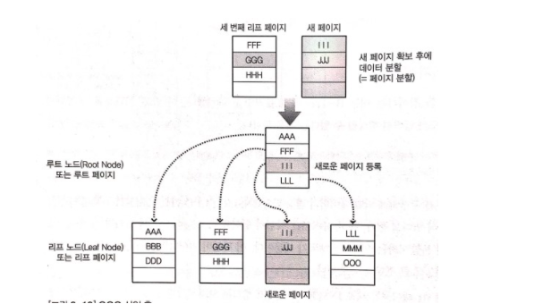 여기서 GGG를 입력한다면 큰 작업이 일어나게 된다. 더 이상 두번째 리프페이지에는 빈 공간이 없어 페이지 분할이 일어난다. 이 작업을 이해 한다면 INSERT, UPDATE, DELETE는 작업이 느려지는지 이해할 수 있다.