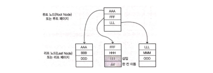 위 사진에서 III를 삽입 한다면 JJJ가 한칸 아래로 내려가고 III가 삽인된다. 여기까지는 큰 작업이 일어나지 않는다.