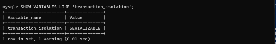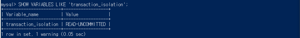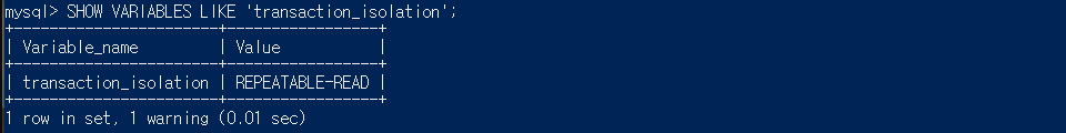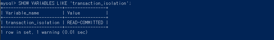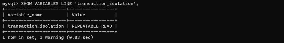 > SHOW VARIABLES LIKE 'transaction_isolation'